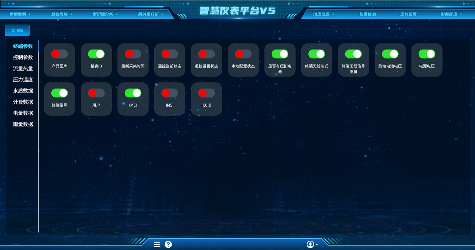 功能开闭,如打开/关闭485采集、打开/关闭4-20mA采集等。