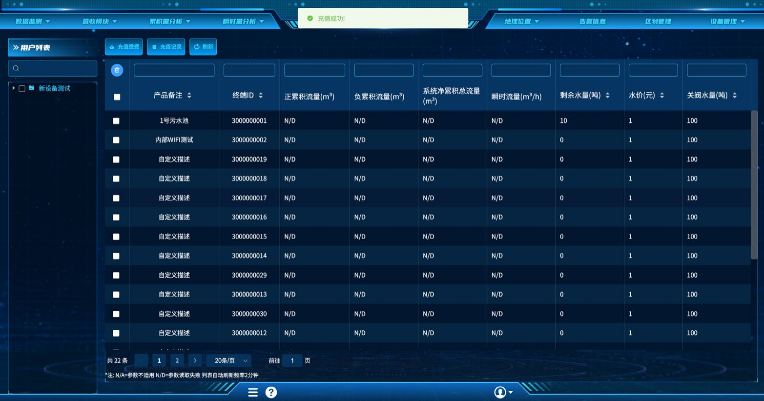 报警功能:可对日累计、瞬时流量、压力等参数设置上下限,超出设置区间时,可通过手机短信、微信公众号推送、电脑平台弹框/声音/颜色等各种途径告警。